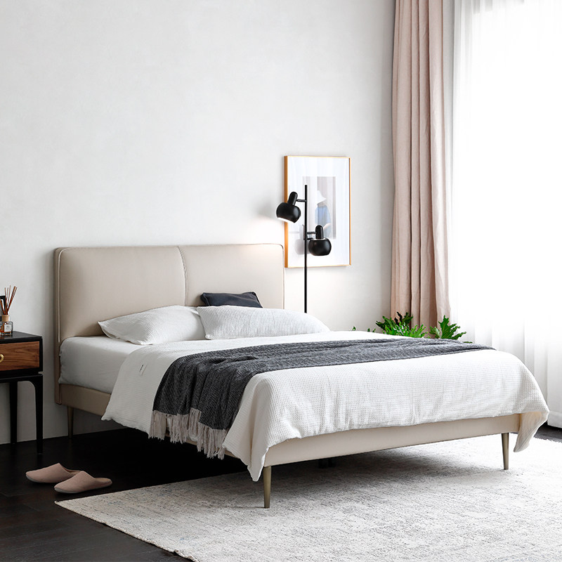 Italy imported first layer leather bed (no different flavor all solid wood frame) ins wind master bedroom leather bed 18# tall bedside table 1 ins wind master bedroom leather bed (hard ridge guard bed