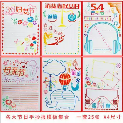 Universal handwritten newspaper template artifact elementary school students semi-finished A4 children's hand-painted painting template set traditional festival A3 tabloid semi-finished multi-functional kindergarten template 8 Open painting material