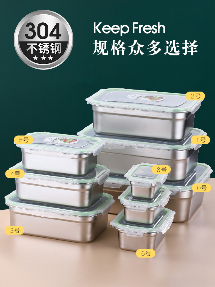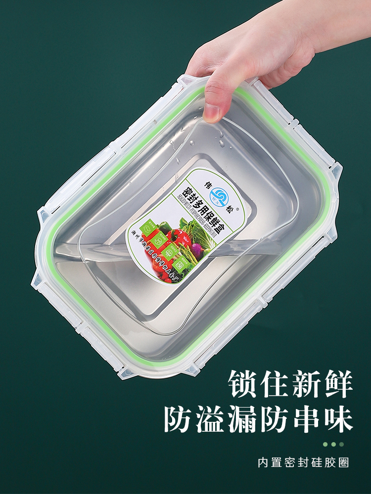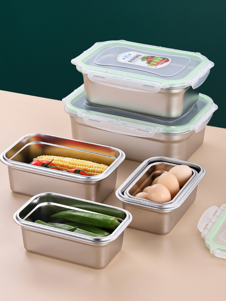 304 stainless steel food preservation box household plastic sealed box rectangular hotel refrigerator storage box