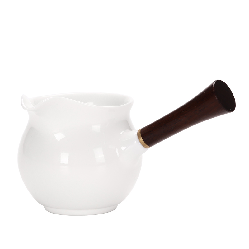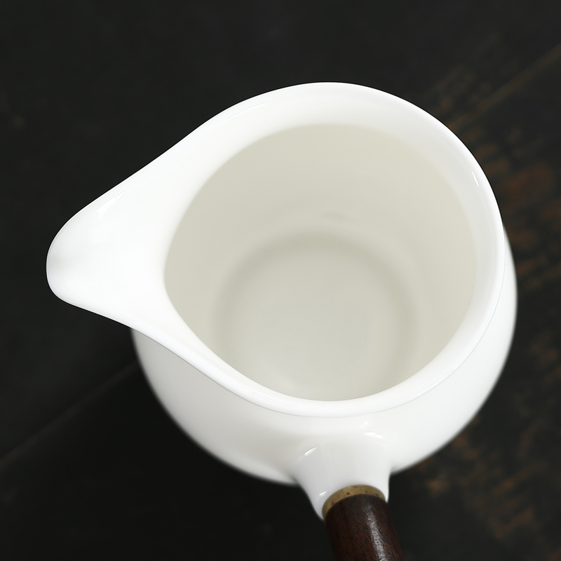 Tea Sea Fair Cup Side Treat White Porcelain Goat Fat Jade Sub tea ware wood handle Anti-burn Jingdezhen Handmade thick-tire Gongfu tea furniture