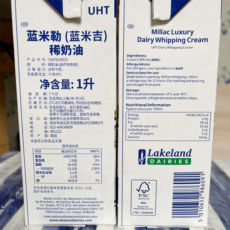 To March UK imports blue windmill light milk oil 1L* 6 box blue migi animal sex cream cake framed cream-Taobao