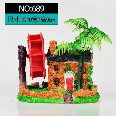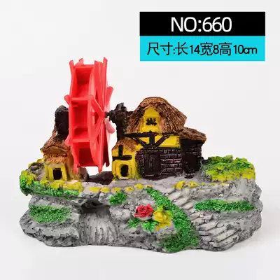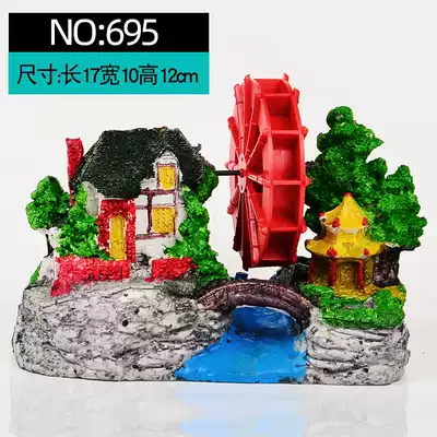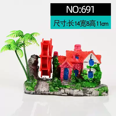 Fish tank landscaping simulation rockery decoration house Aquarium house windmill waterwheel pneumatic ornaments water wheel spit bubbles