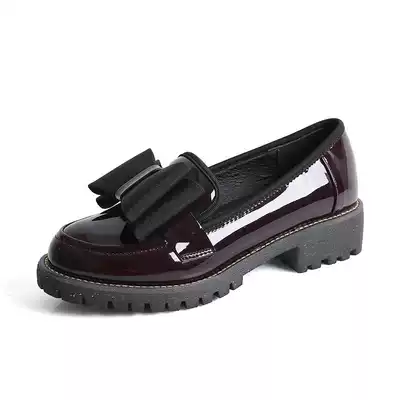 Le Fu shoes female British style small leather shoes thick heel middle heel shoes shallow mouth Japanese jk Joker Joker one pedal high heel soft leather