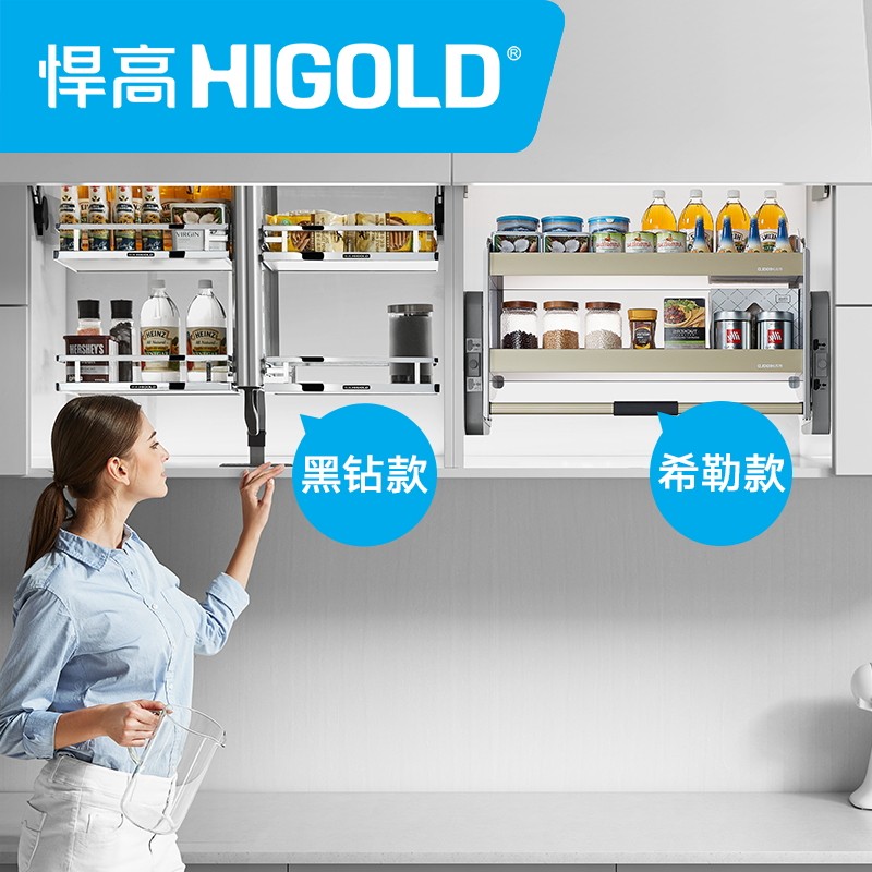 HIGOLD Humvee high kitchen hanging cabinet Lift pull basket overall cupboard double bowl rack integral built-in bowl basket seasoned basket