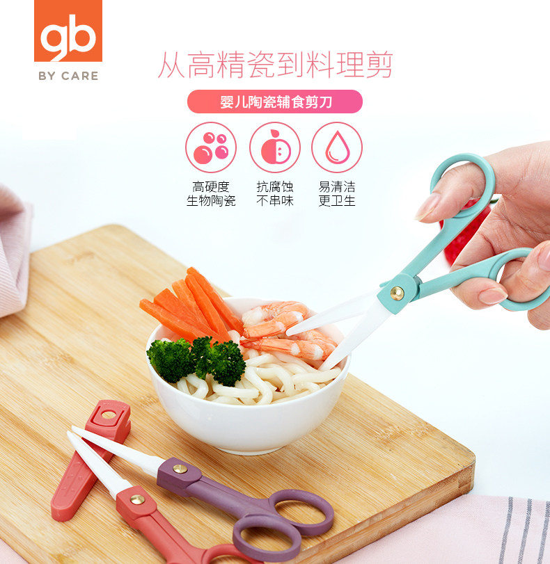 Good child food scissors Baby food tools Portable set Children's baby ceramic scissors can cut meat to take away