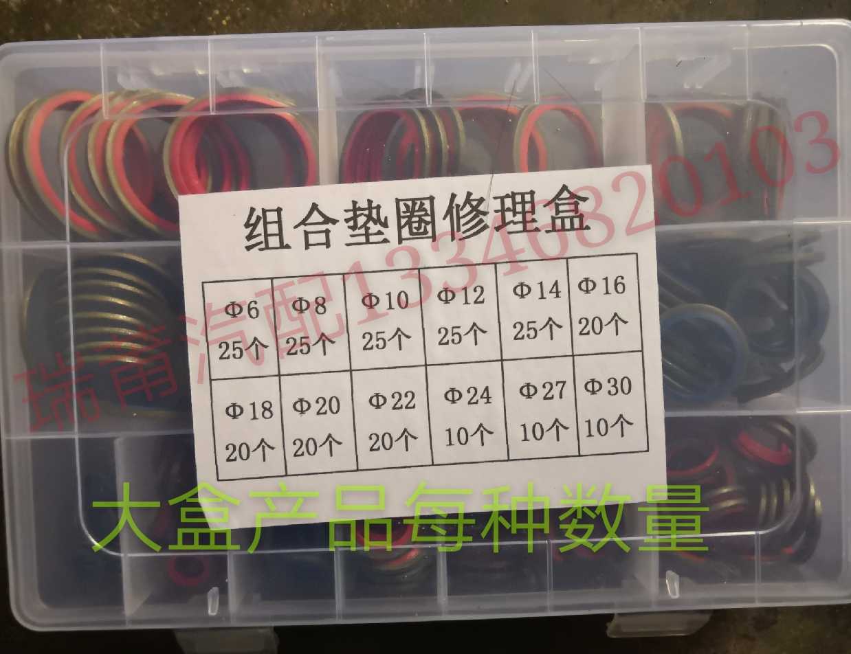 Oil pipe seal combination metal iron-coated plastic boxed gasket rubber seal oil pipe gasket gasket combination boxed
