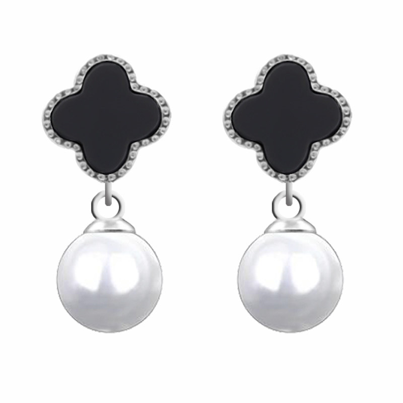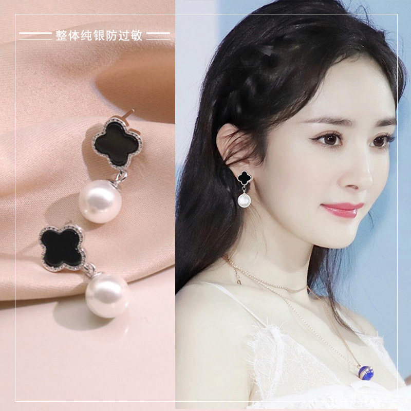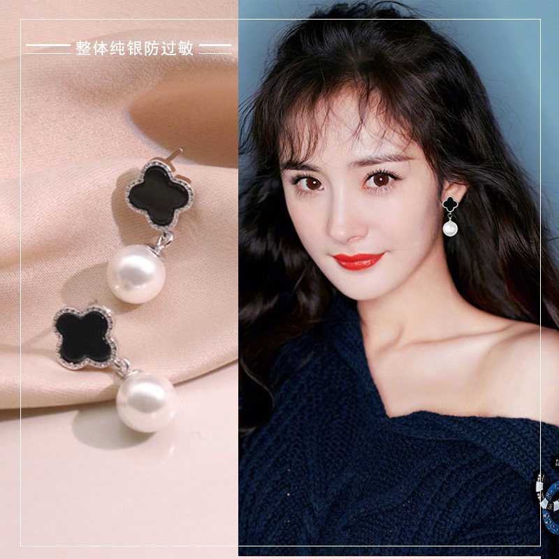 Lucky Four Leaf Grass Pearl Ear Nail Female Pure Silver Anti-Allergy Earrings Brief 100 100 Hitch 2022 New Trendy Line Earrings