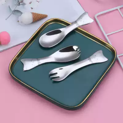 2 German 304 stainless steel children's eating spoon children children learn to eat spoon practice spoon baby fork spoon one