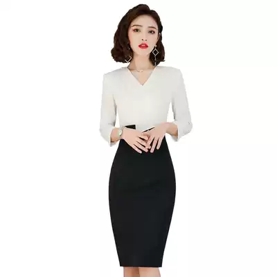 Professional dress women color-dressing dress dress slim workwear spring and summer fashion temperament medium and long version ol commuter overalls