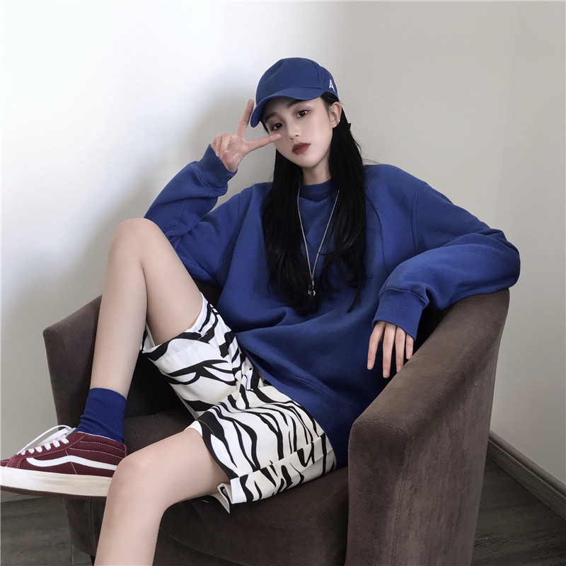 YANS 2021 summer new ins zebra pattern high-waisted casual shorts wide-leg pants bf five-point pants men and women fashion