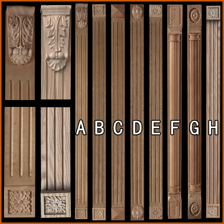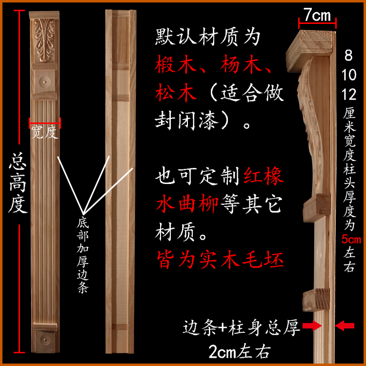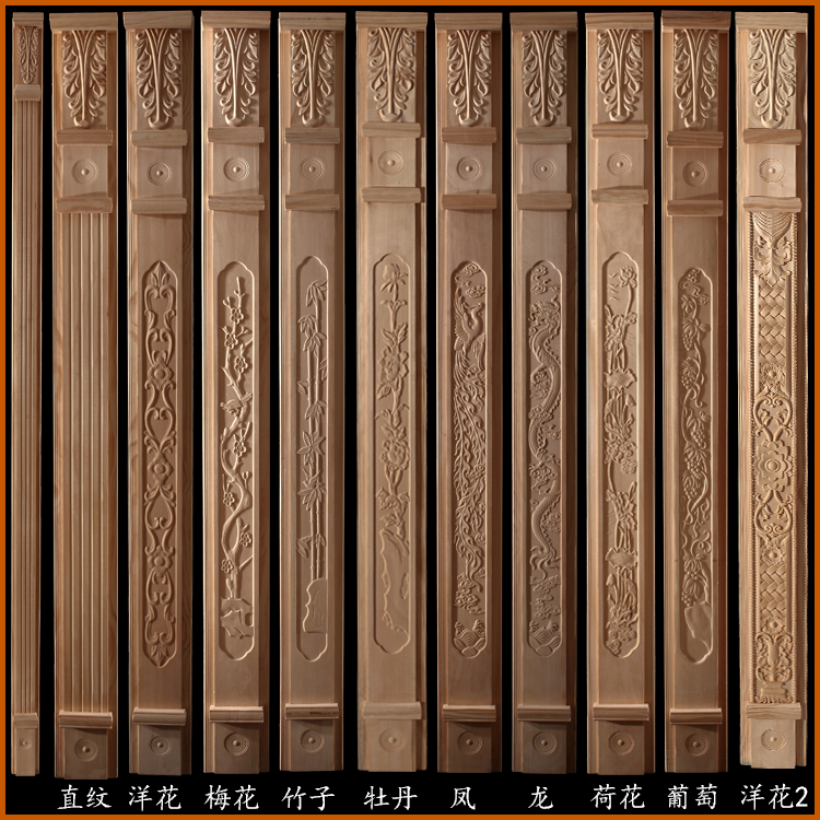Solid wood Roman column Flat door set Central European living Room Wood carving decorative lines Passageway semicircular plane wooden column