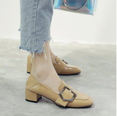 Hong Kong leather small leather shoes 2022 summer new women's shoes all-match British high heels women's Korean version thick heel shoes