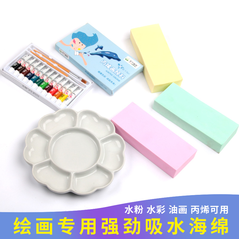 Wei Zhuang painting material cleaning water powder paint strong water absorption sponge water color propylene brush suction water grinding force cotton block fine art painting with washing sea cotton