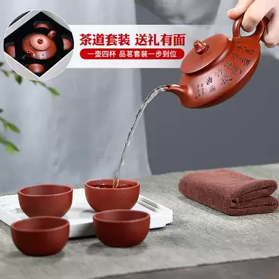 Dream sand House Yixing famous purple sand pot pure handmade teapot home kung fu tea set clean cement virtual flat pot