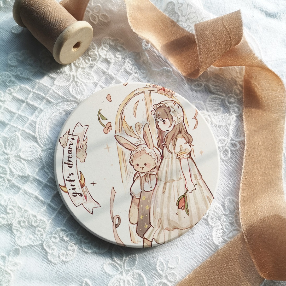 Now {Notte Studio} original license Vanilla Strawberry Alice Badge Pin Absorbent Ceramic Coaster