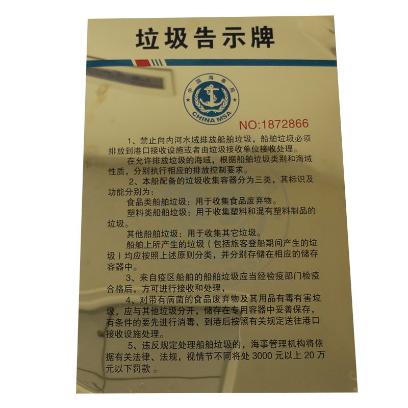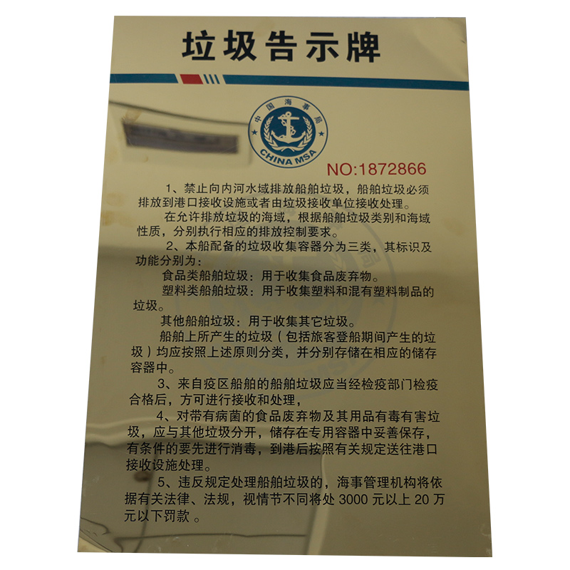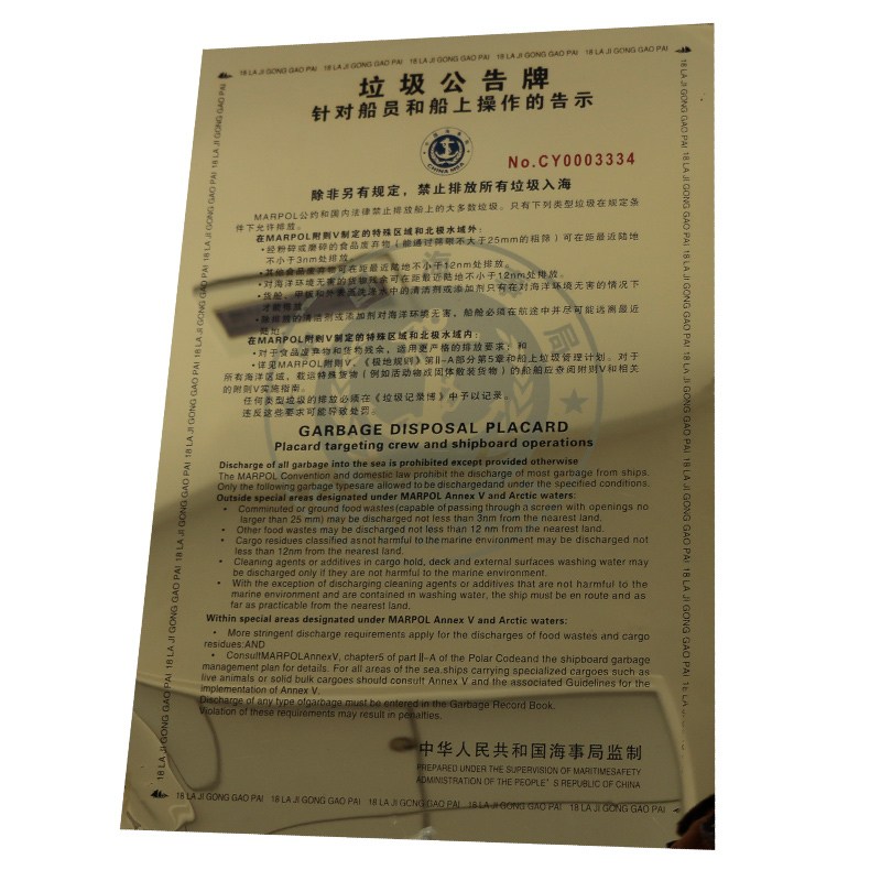2020 New Edition Inland Marine Garbage Billboard Maritime Bureau Authentic Training Manual indicating copper surface signs