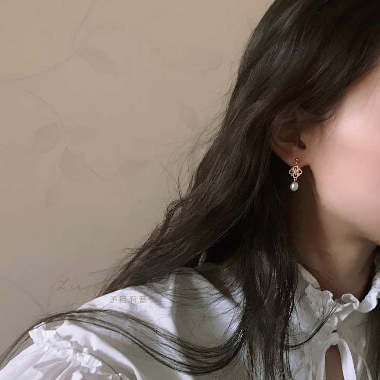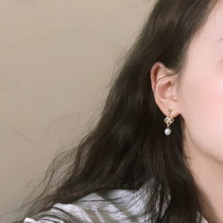 Yuyue Youyin lucky me four-leaf clover light retro earrings freshwater pearl earrings 925 silver earrings gift female