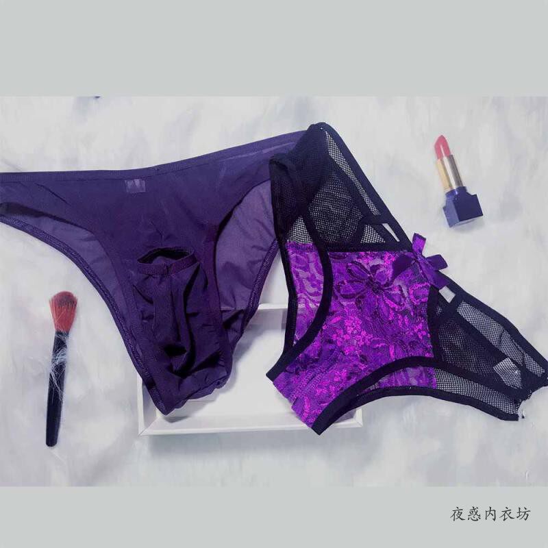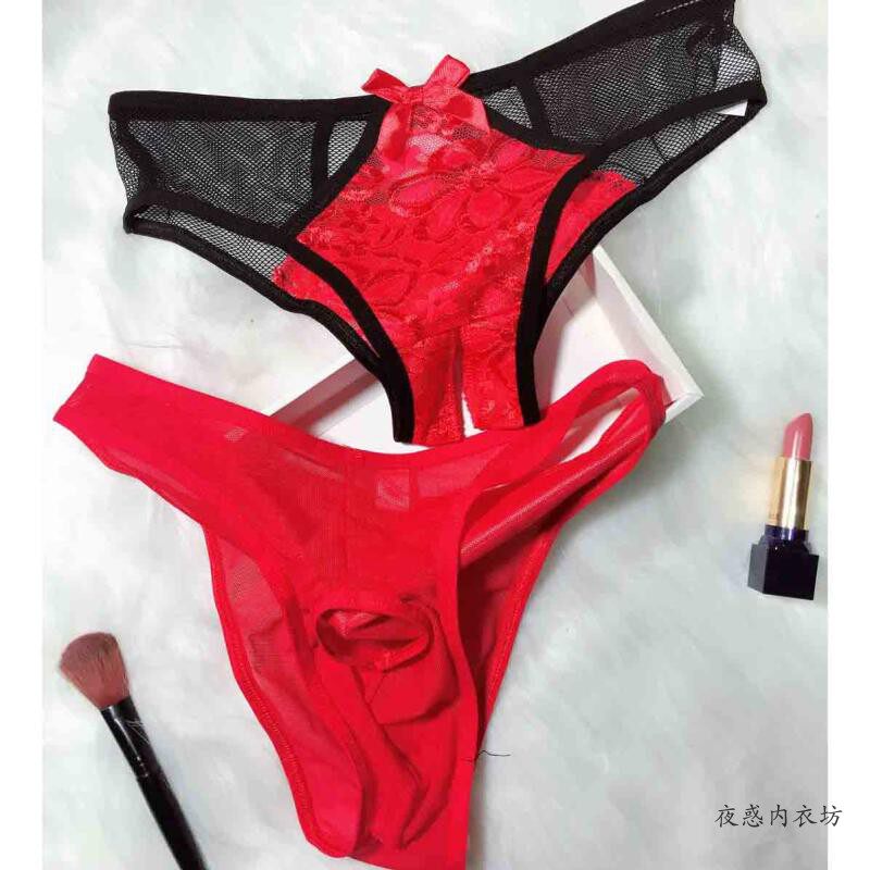 2 pairs of couples thong head sexy convenient underwear lace opening men and women private happy temptation underwear