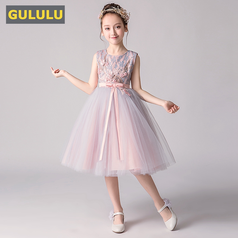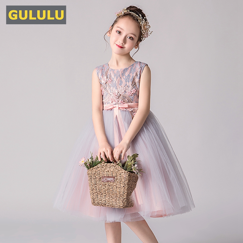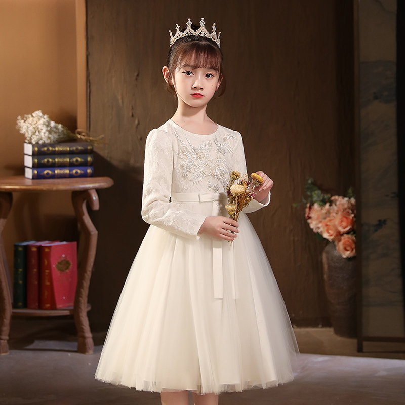 Princess Dress Girl Puffy Yarn Children Gown Nursery School Elementary School Model Walk Show Out of Flowers Child Wedding Dress autumn