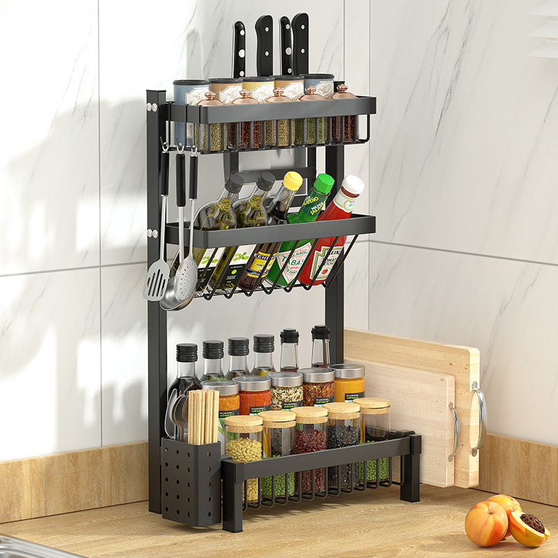 Three-layer seasoned rack (with chopstick cage) three layers of seasoning rack (with a knife frame) three layers of seasoning rack (with a matching chopstick cage) three layers of seasoning rack (with a chopstick cage tool holder) three layers of seasoning frame (