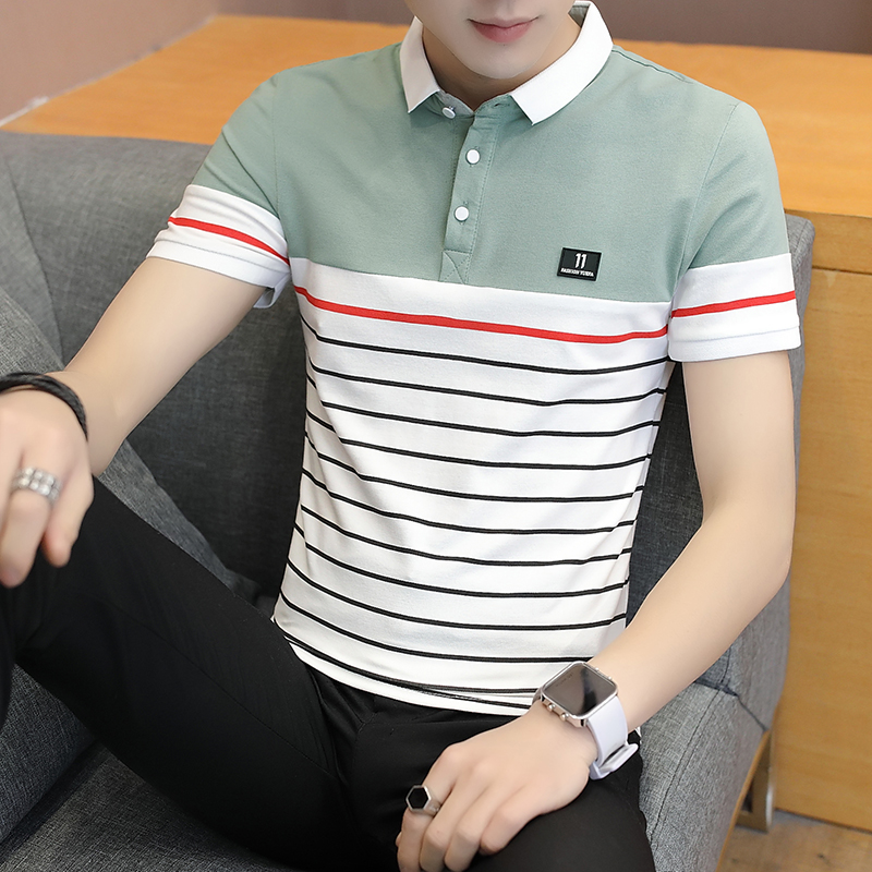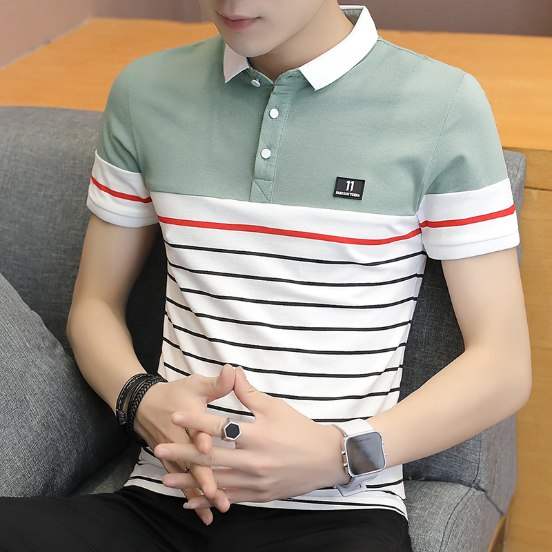 2021 new summer fashion brand short-sleeved t-shirt men's striped polo shirt with collar top clothing trend body T-shirt