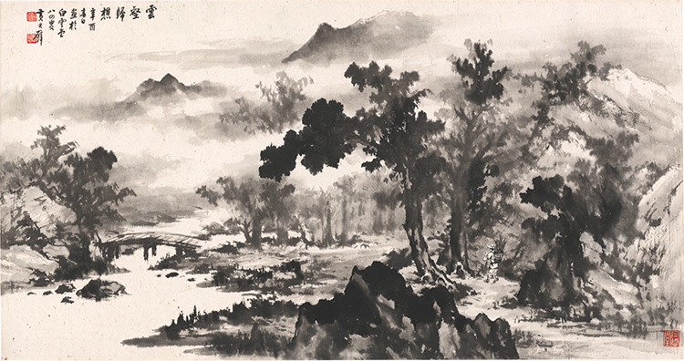 Huang Junbi Chinese painting Cloud Gully return to Qiao Tu banner landscape Rice paper copy painting High-definition micro-print print Chinese decorative painting