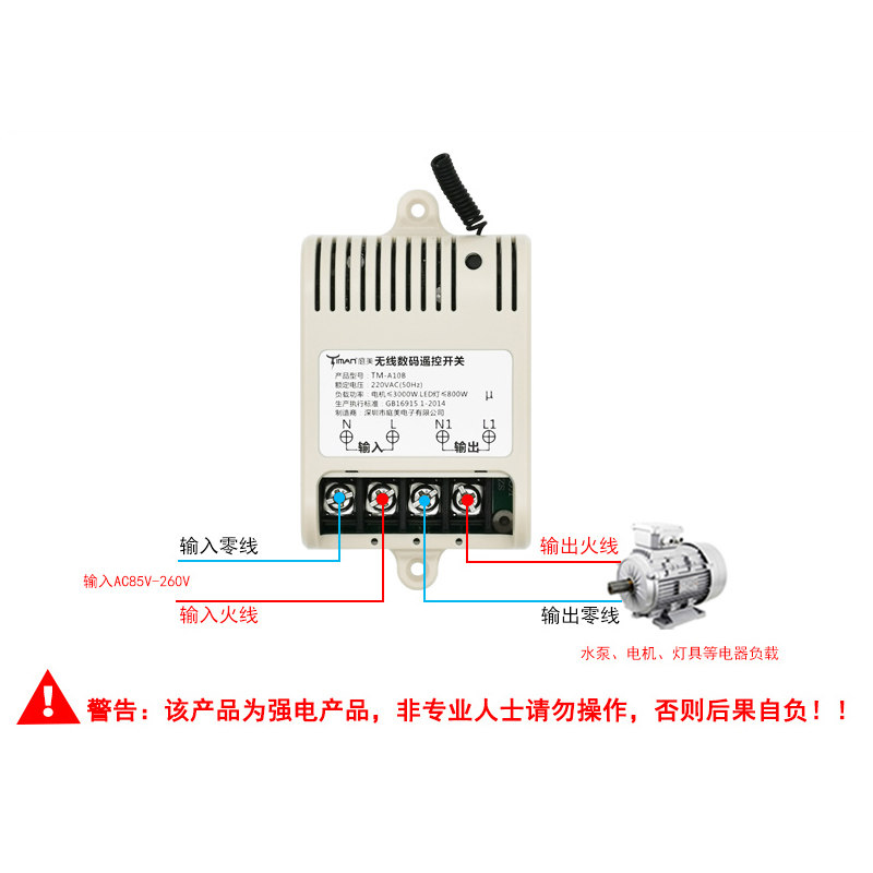 TIAN Court Beauty Electronic A10B High Power Water Pump Luminaire Wireless Remote Control Switch 220V Receiver Learning Type