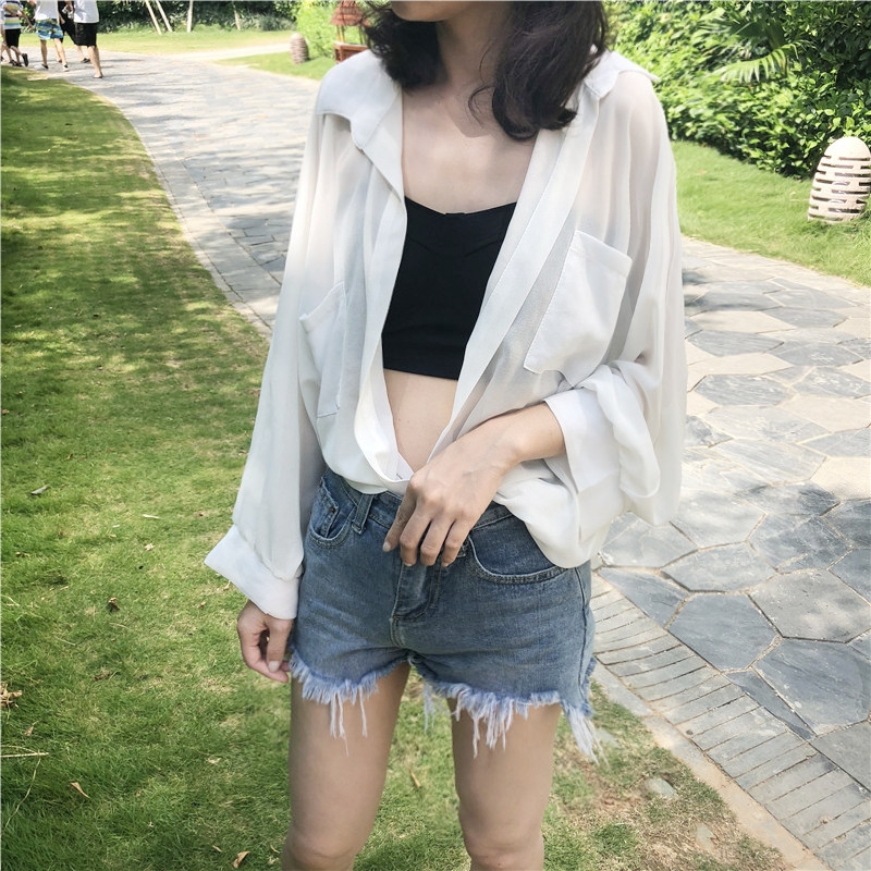 Summer new loose snow-spinning slim fit sunscreen woman jacket Short-style sexy 100 hitch superfairy sunscreen