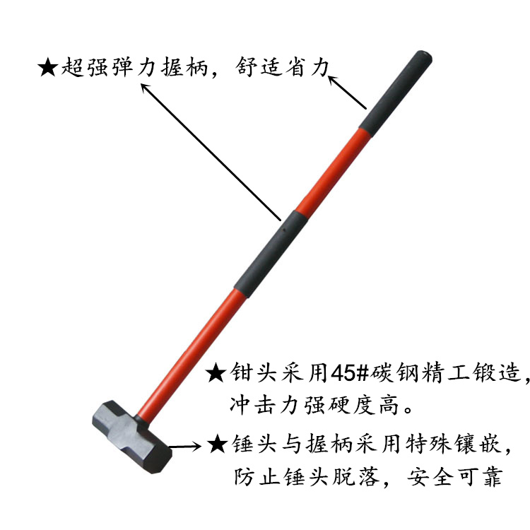 Shock-proof hand octagonal hammer 8-angle hammer 6p big hammer stone decoration smashing wall demolition fire long handle belt tool