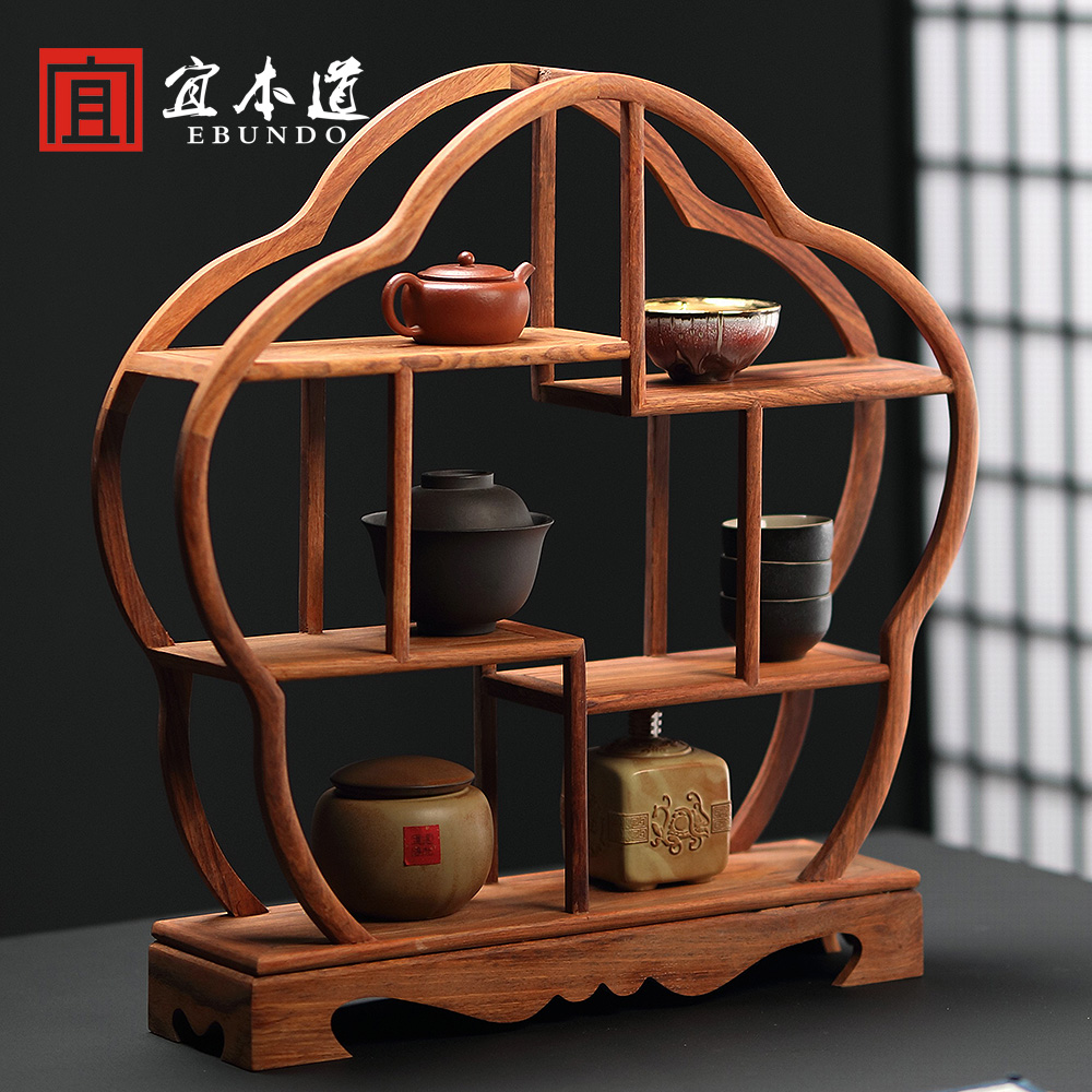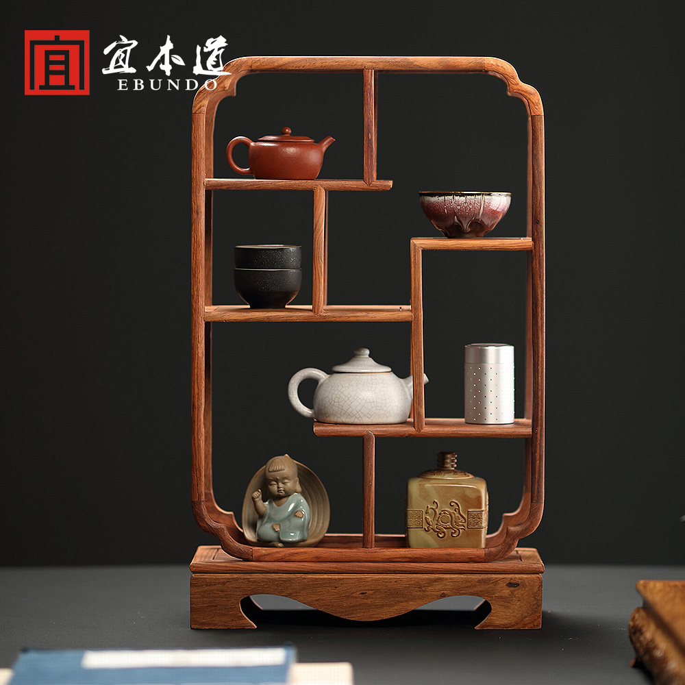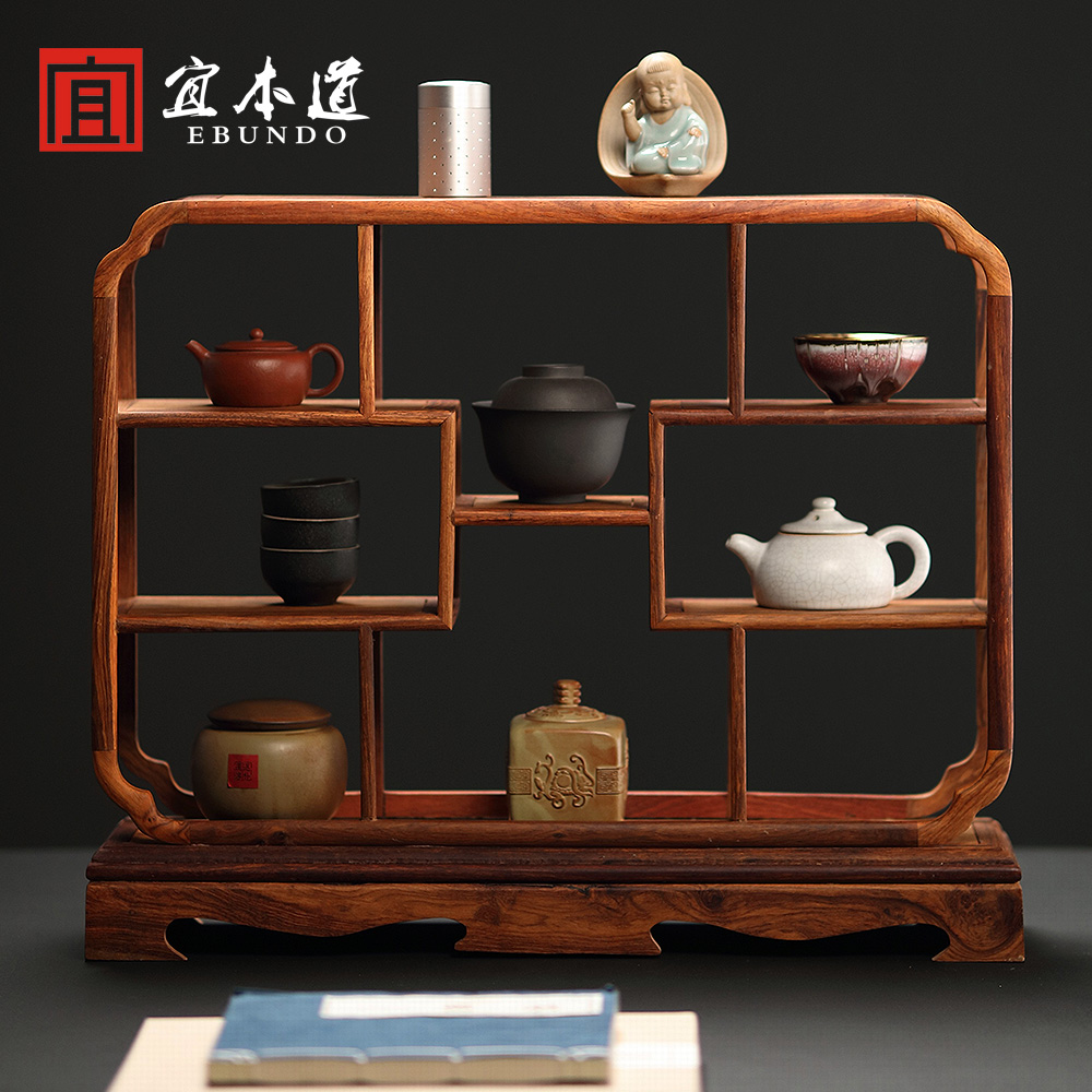 Rosewood Bogu Rack Simple Modern Living Room Lattice Tea Set Rack Solid Wood Chinese Zisha Pot Small Ornament Shelf