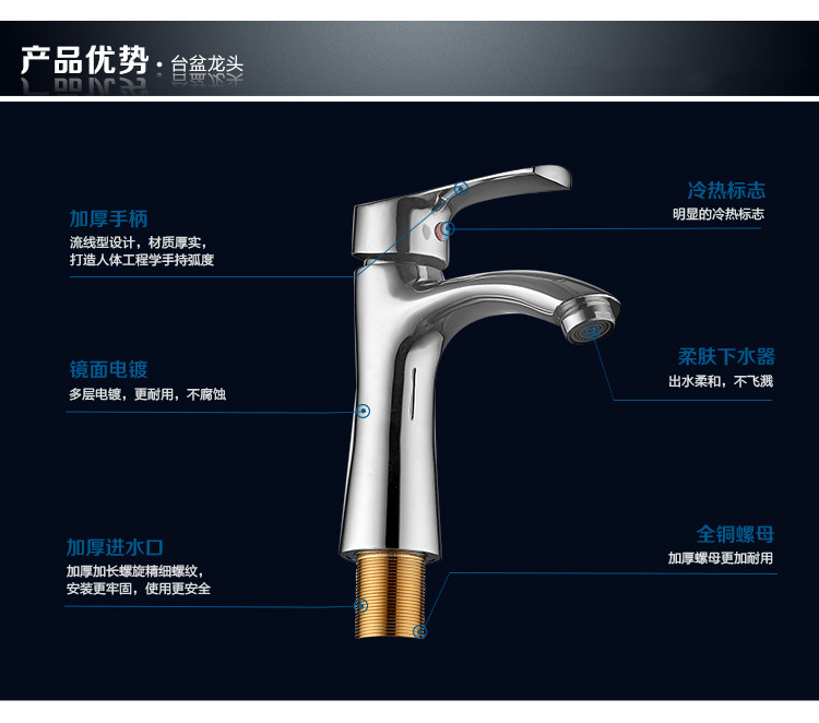 Brand copper single-hole basin small curved faucet table basin glass basin hot and cold double water adjustment vertical faucet