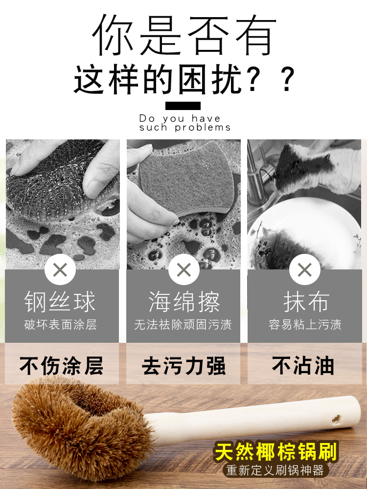 Coconut palm pot brush long brush net red brush pot artifact cleaning brush brush pot brush kitchen brush natural old-fashioned