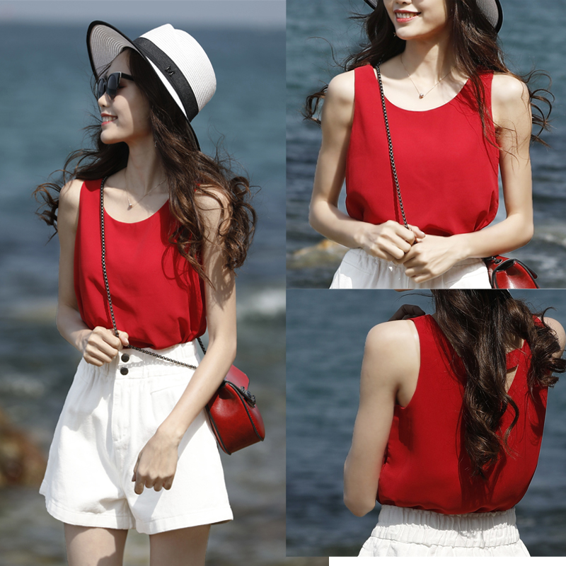 Snowspun blouses woman short sleeve summer 2019 new Korean version loose 100 lapped sexy harness vest female outwear damp