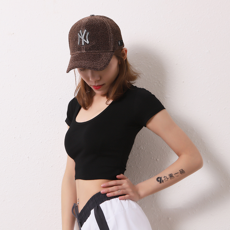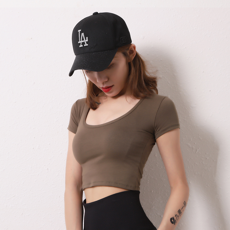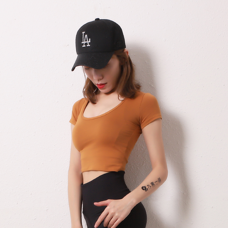 Nine Wheat Pint Sexy Dew Waist Fitness Clothing Women Tight Sports Blouse Shorts Shorts Quick Dry Short Sleeve Yoga T-Shirt Leakage Cord