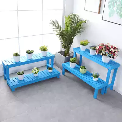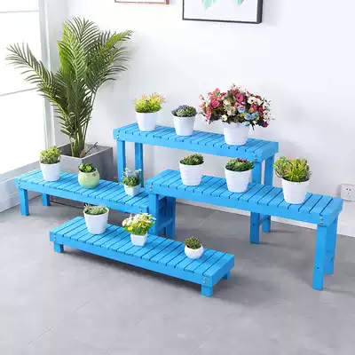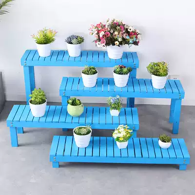 Solid Wood step pedal outdoor sky blue anticorrosive wood flower stand step floor balcony fleshy flower stand outdoor multi-layer