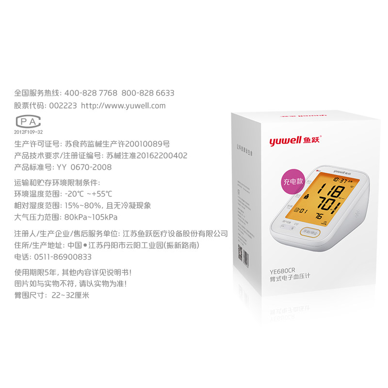 Yuyue electronic sphygmomanometer YE680CR arm-type accurate measurement of household electric rechargeable hypertension manometer