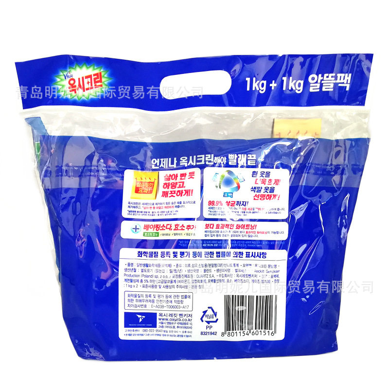 South Korea's Ossiklin laundry detergent bleached white bright white low irritated jade Creek bleached white powder 1kg-Taobao