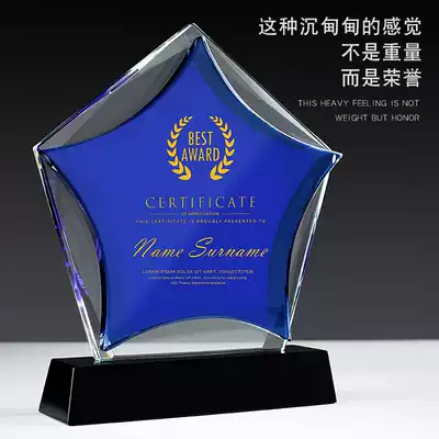 Blue five-pointed star crystal medal creative authorization brand customization company corporate logo image display photo production