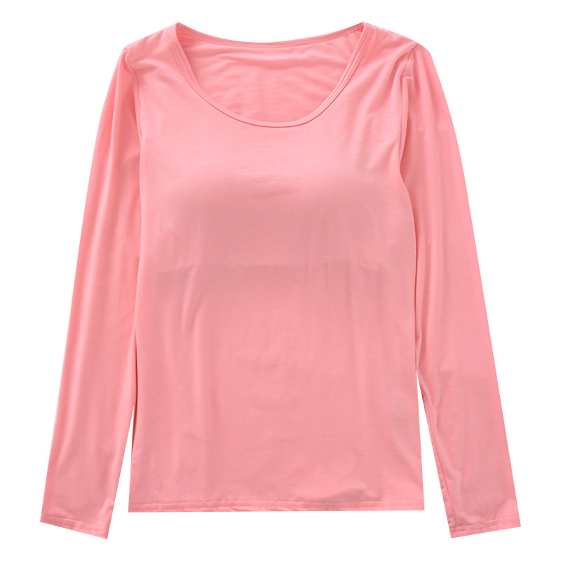 With chest pad pajama top Women's Modal long sleeve pullover T-shirt Wear-free bra autumn coat thin section comfortable base shirt