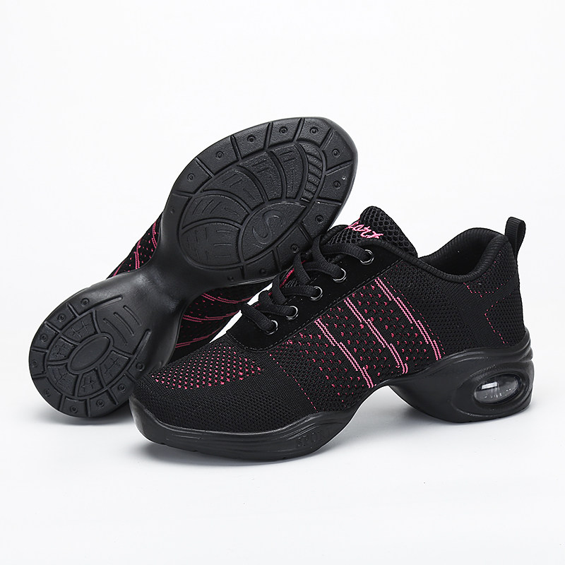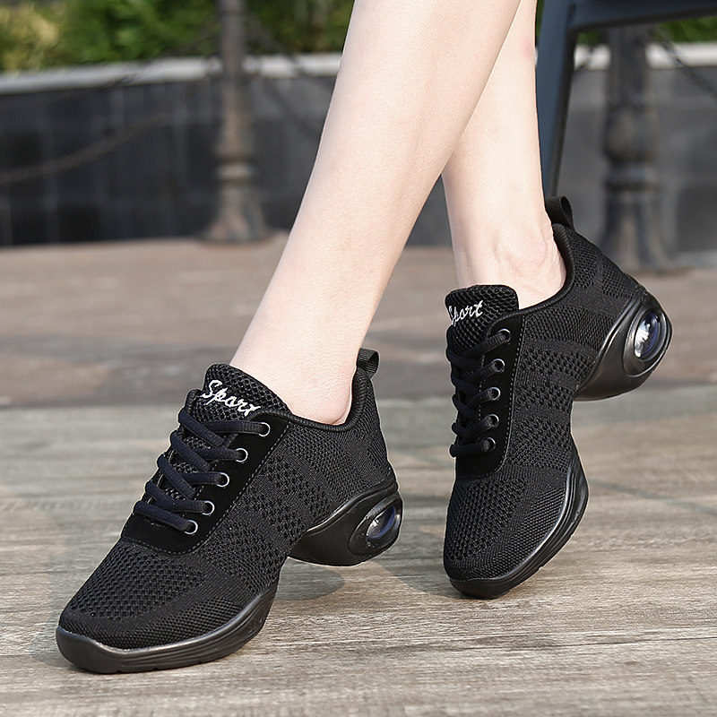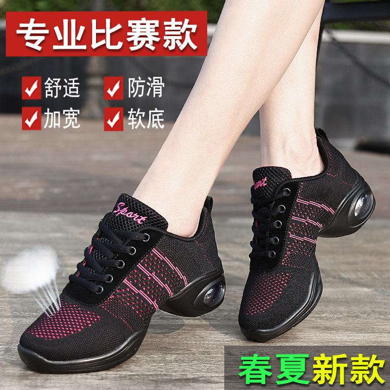 Autumn Winter Dancing Shoes Lady Flying Textured Net Face Breathable Square Dance Shoes Soft Bottom Shock Absorbing Modern Dance Shoes