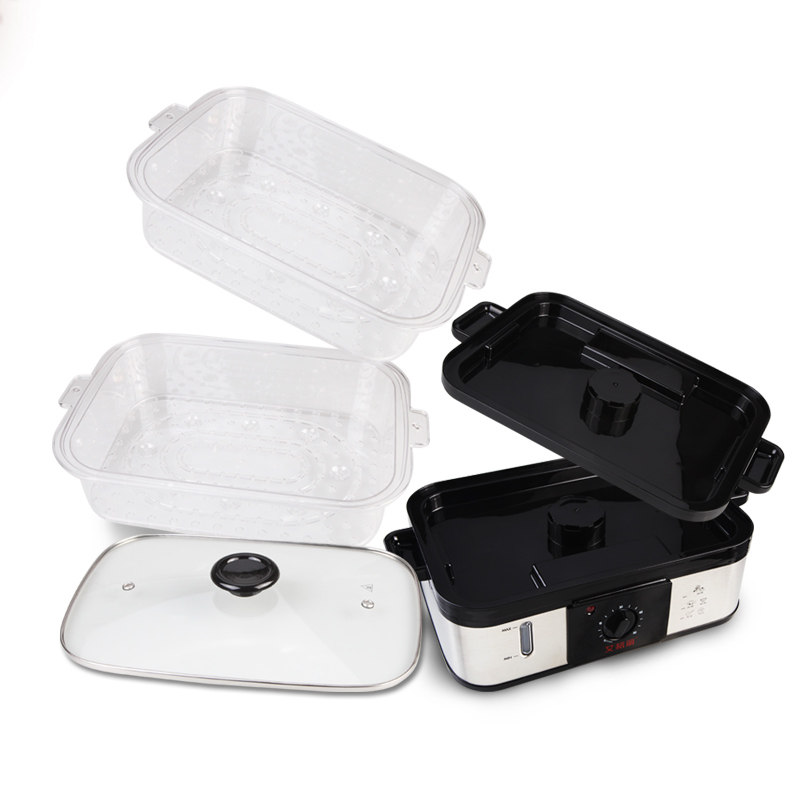 Rectangular double-layer multi-functional steam cage household anti-dry burning super-large capacity transparent timing mechanical steam fish electric steam pot