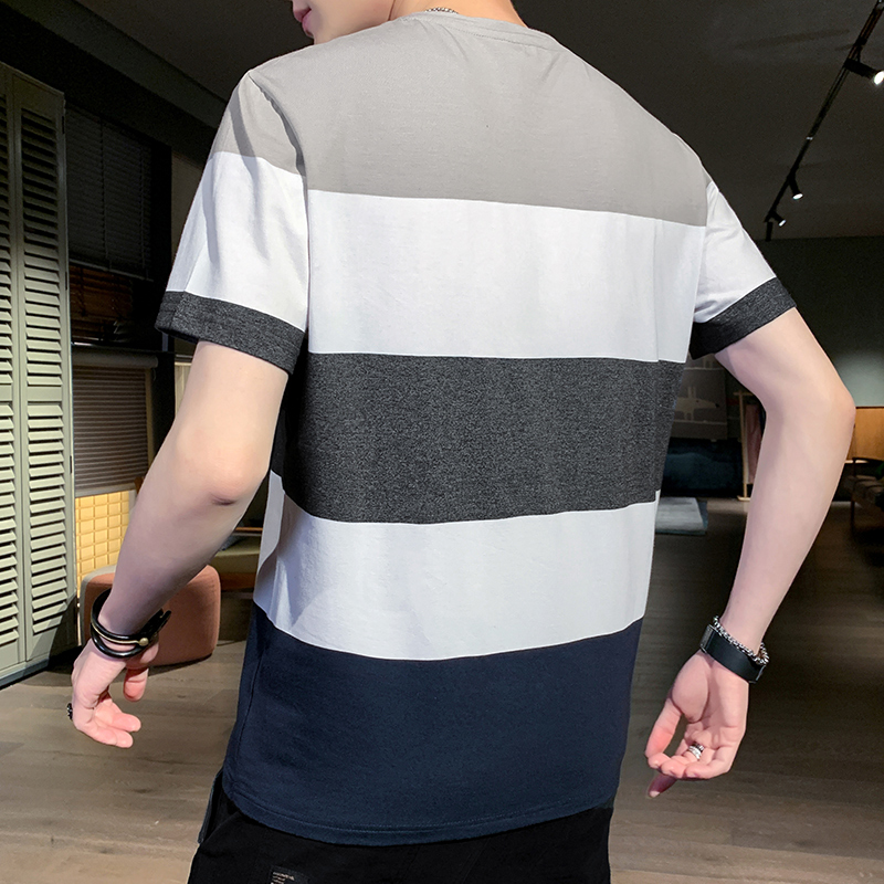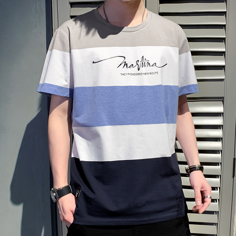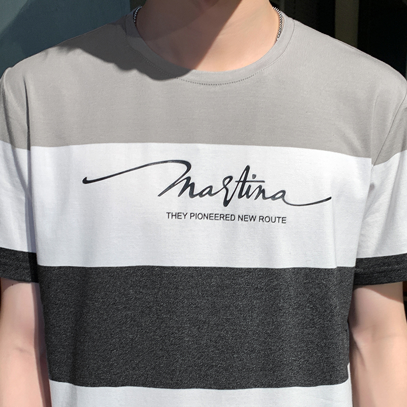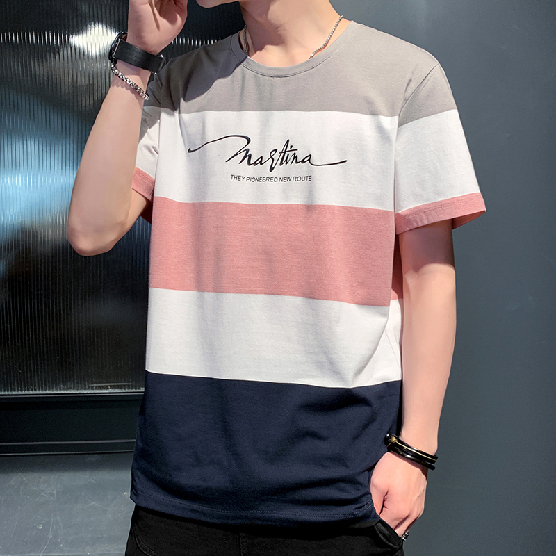 New short-sleeved T-shirt men's Korean slim-fit crew neck printed half-sleeve summer men's solid color youth white T-shirt trend
