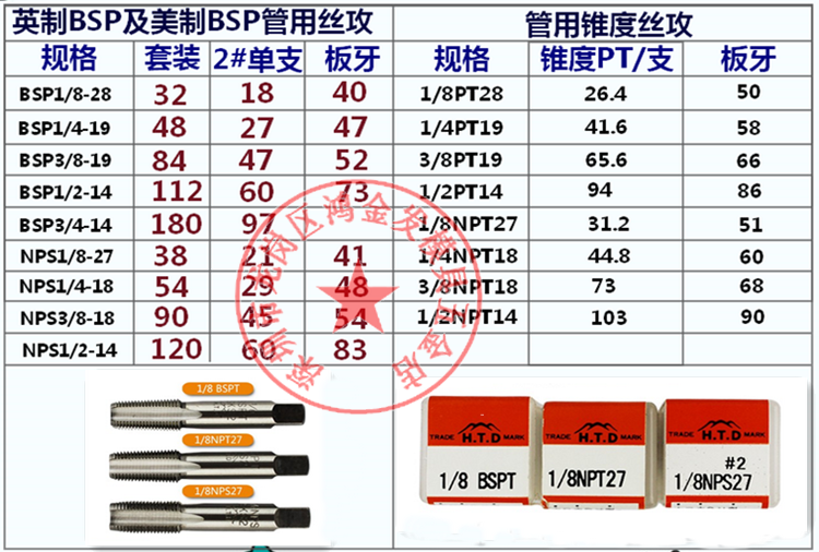 Japan Fuji brand pipe thread hand tap water pipe thread tap PT NPT NPS BSP1 2 1 4 1 8