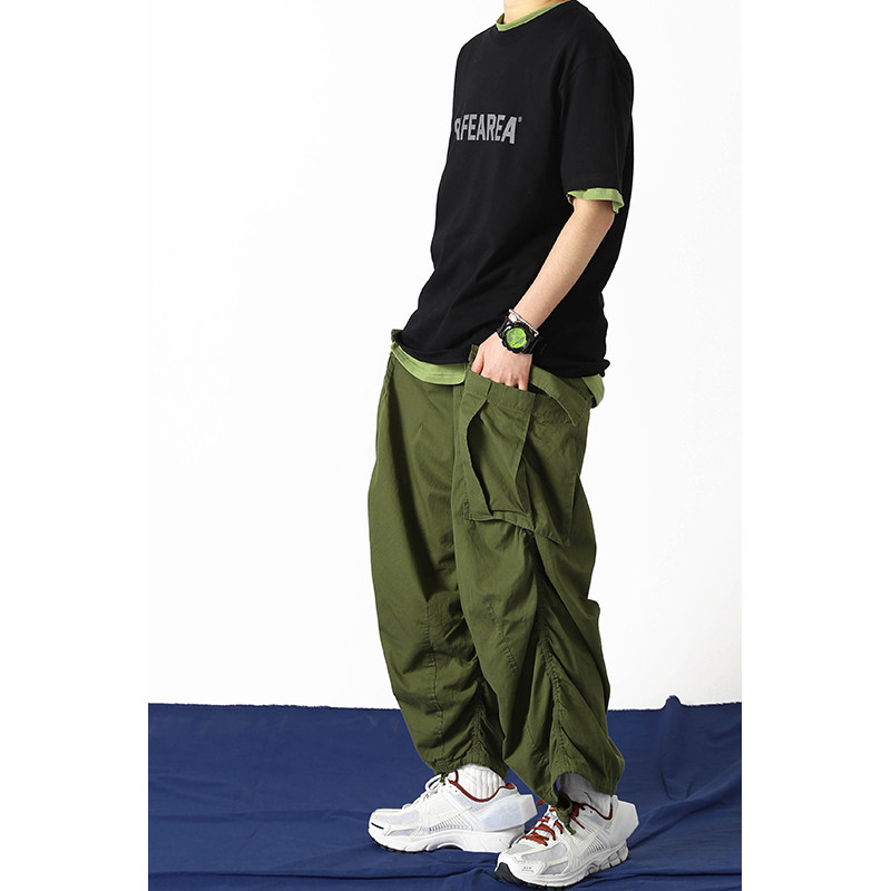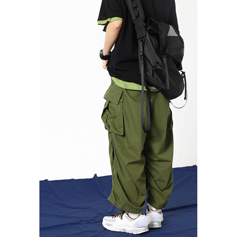 Add fertilizer and increase tooling drawstring trousers shape sense men's and women's large pocket overalls wide-leg pants spring and autumn extra wide