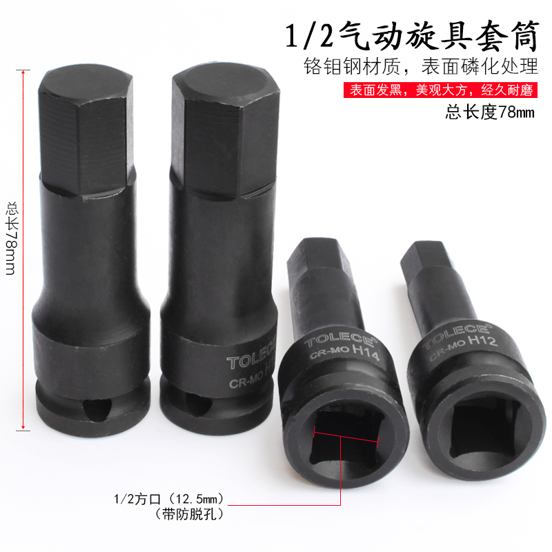 1 2 Pneumatic pneumatic wrench hexagon socket head Pneumatic wrench Extended electric screwdriver sleeve S2 pressure batch sleeve head