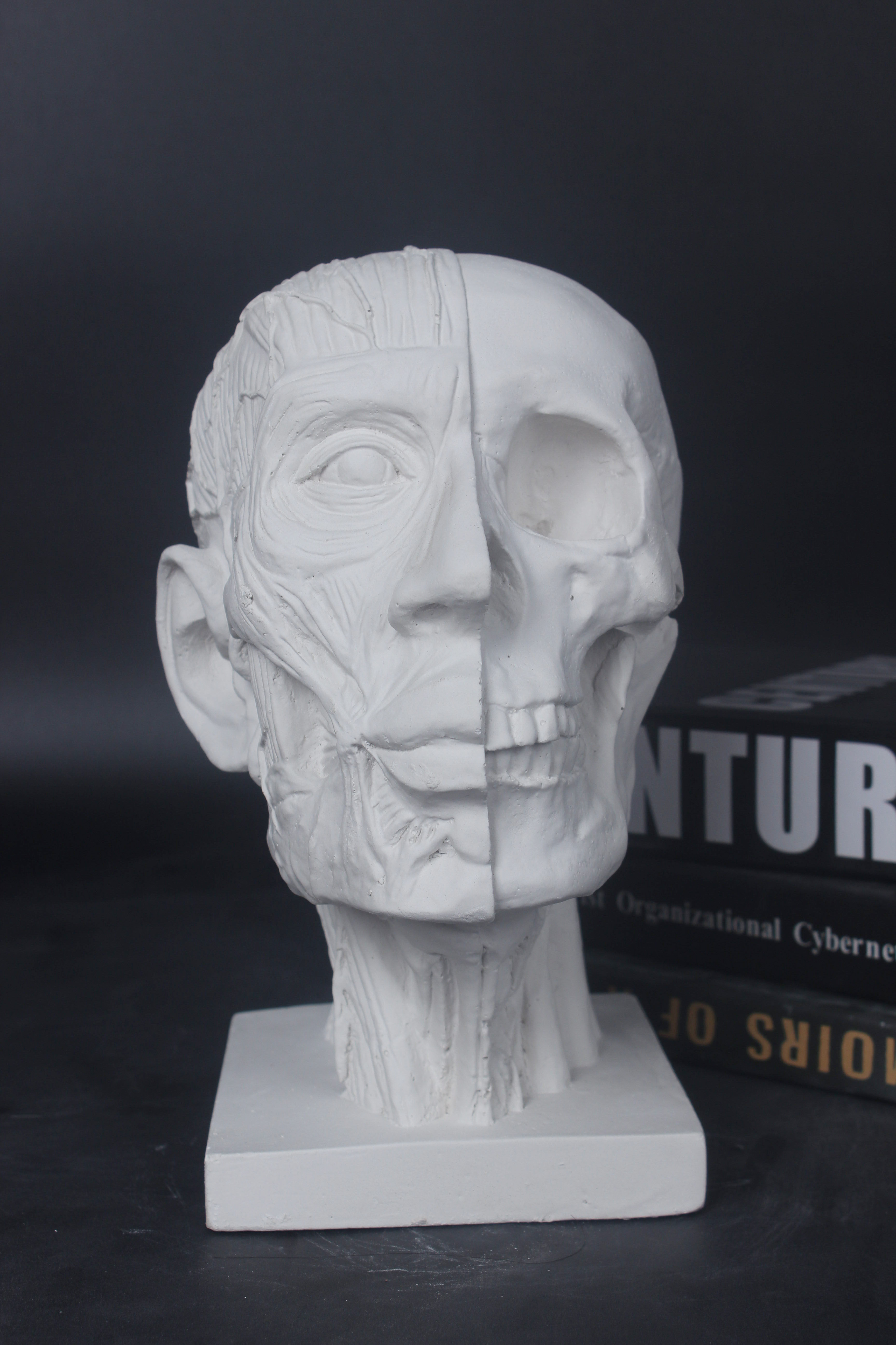 Head bone plaster Fine art plaster figure Head anatomical muscular skull sketching plaster like a fine art room Write a stilllife