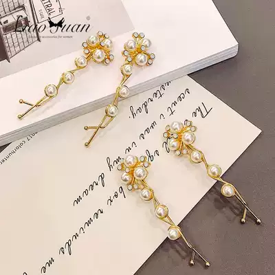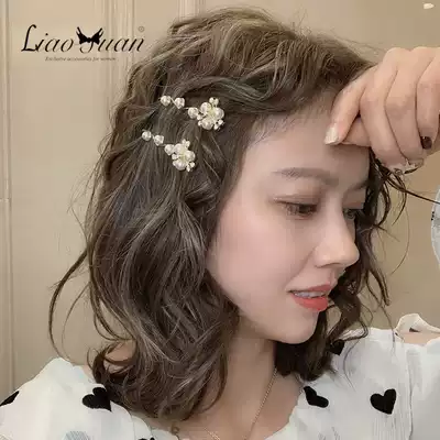 Flower bean imitation pearl hairpin female Korean simple side clip sweet net red bangs clip girl back of the head hairpin