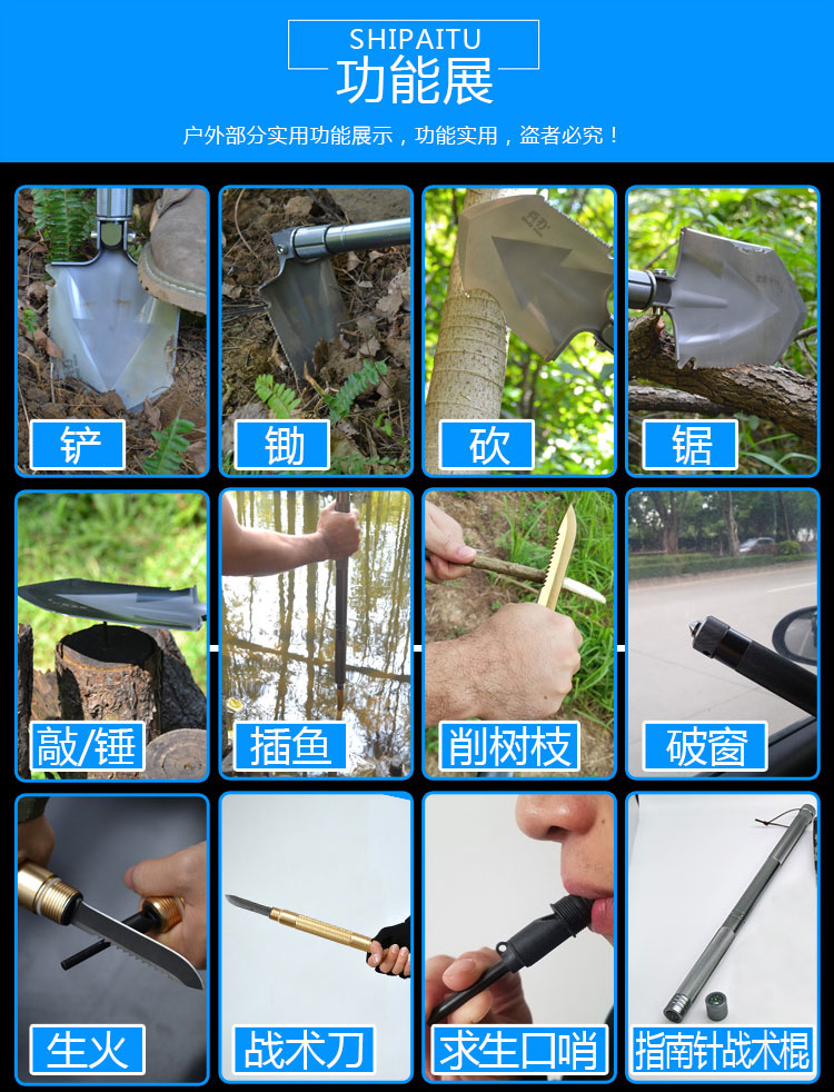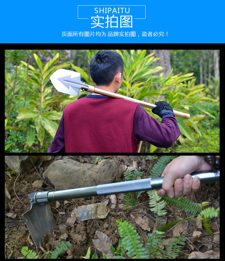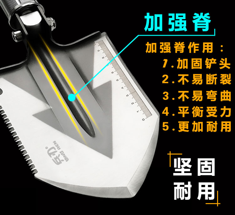 BR Multi-functional engineering shovel outdoor anti-body work shovel manganese steel Army version Small number of car fishing folding shovel iron shovel