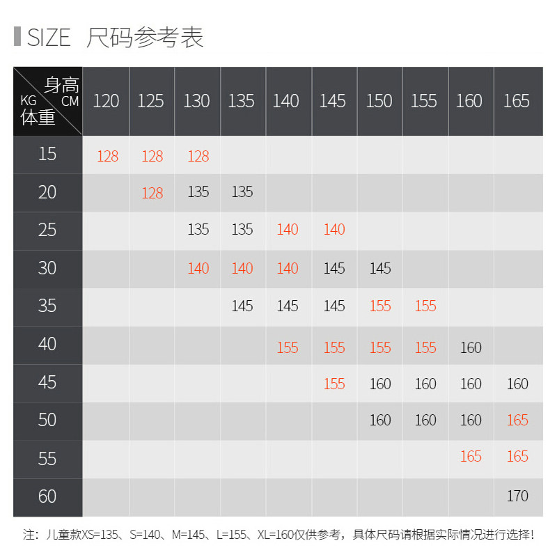 XS 135 S 140 M 145 145 155 XL 160