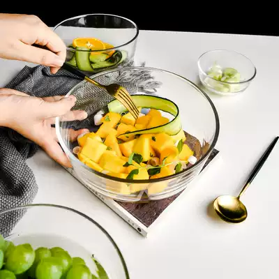 Glass bowl Salad bowl Fruit large Japanese creative household transparent instant noodle bowl Soup material lead-free tableware set